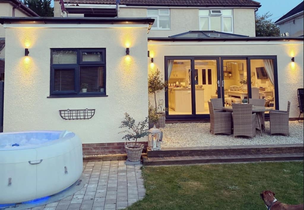 Lay-Z-Spa St.Moritz modellen hadde jeg brukt i kombinasjon av en lekker terrasse og grå steinbelegg!