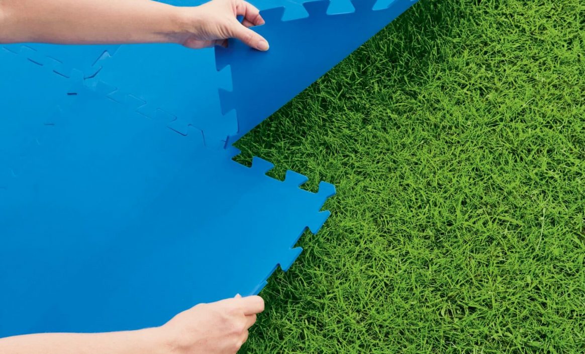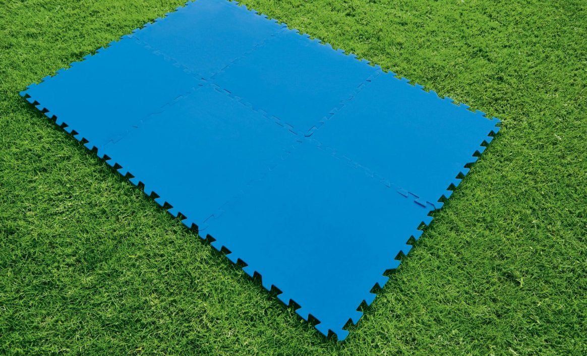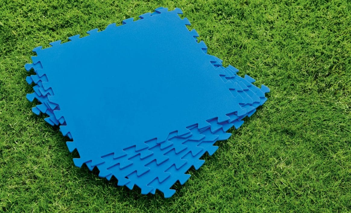 En ekstra fordel med gulvmattene er at de effektivt hindrer skader på gresset under bassenget. De fungerer som en barriere mot overflødig vannsøl da det absorberes før det når gresset.
