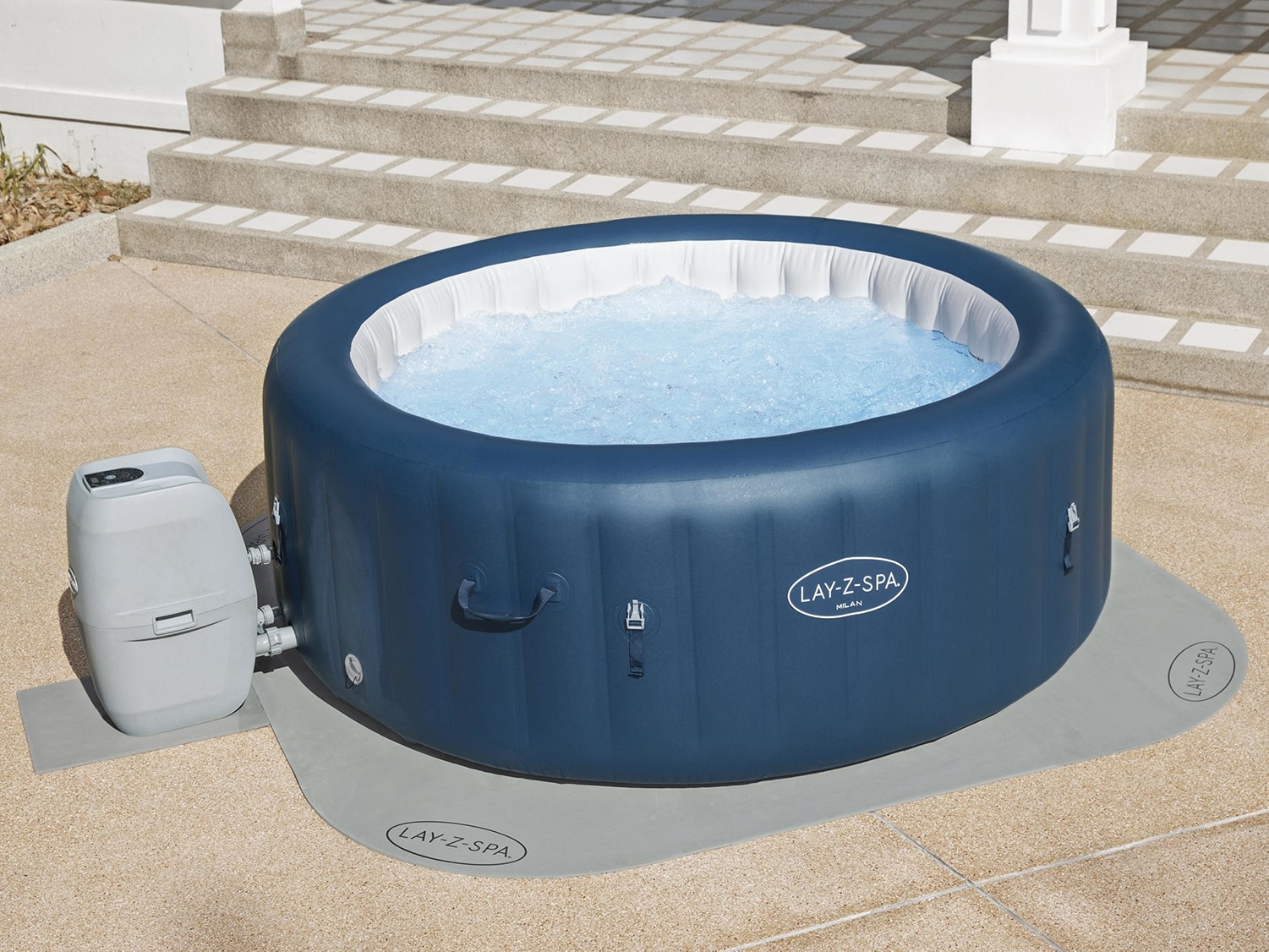 Bunnmatte fra Lay-Z-Spa isolerer og minimerer varmetap. Det beskytter også gulvet mot riper, skader og annet hverdagslig slitasje. Pakken inneholder: 1 stykk komplett bunnmatte (2,16 m x 2,16 m) til Boblebadet og 1 stykk bunnmatte til Pumpen.