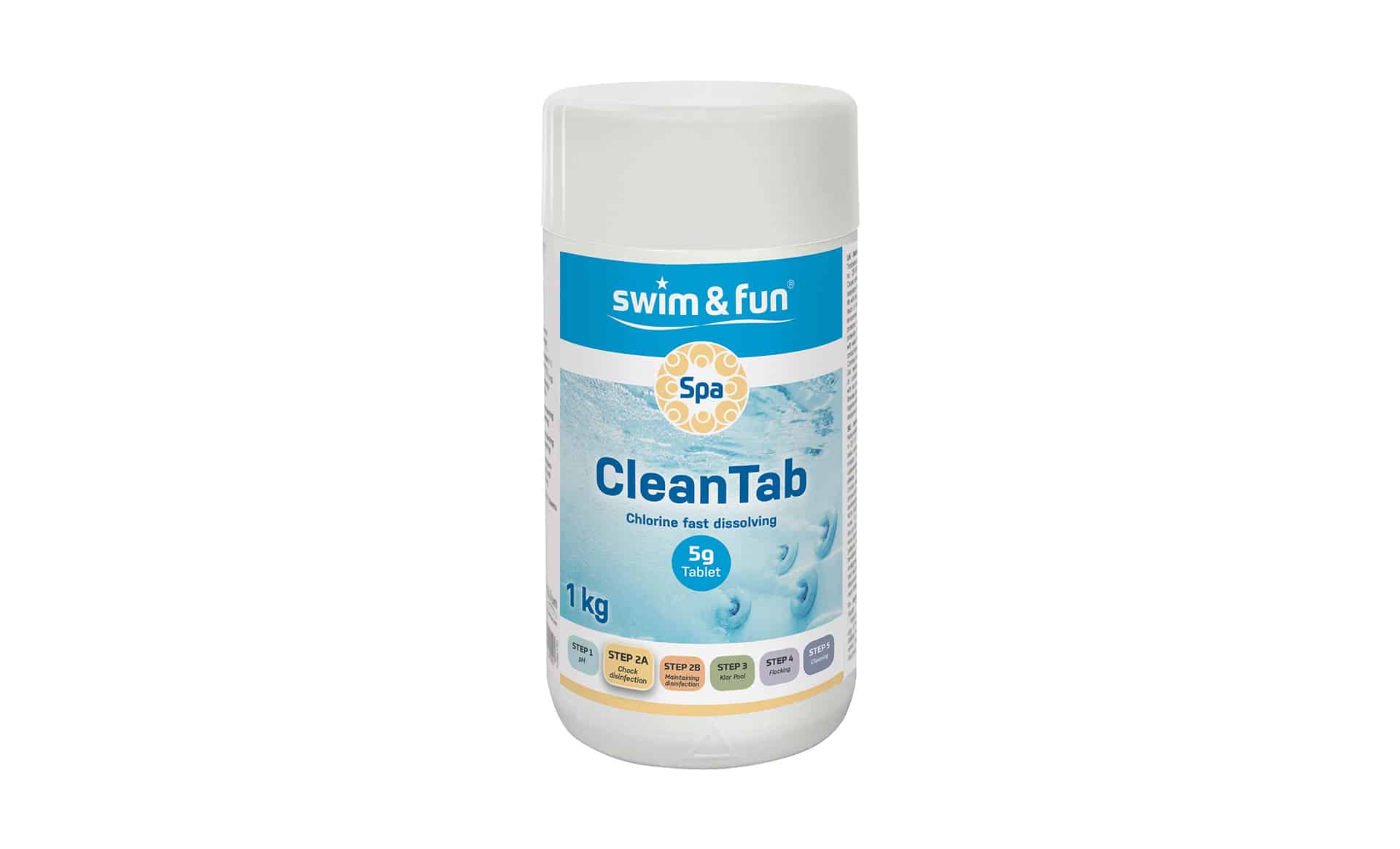 CleanTab 5g er hurtigoppløselige tabletter som sikrer vannhygienen i boblebadet (både innendørs og utendørs), med et vanninnhold på mellom 500 og 1000 liter.