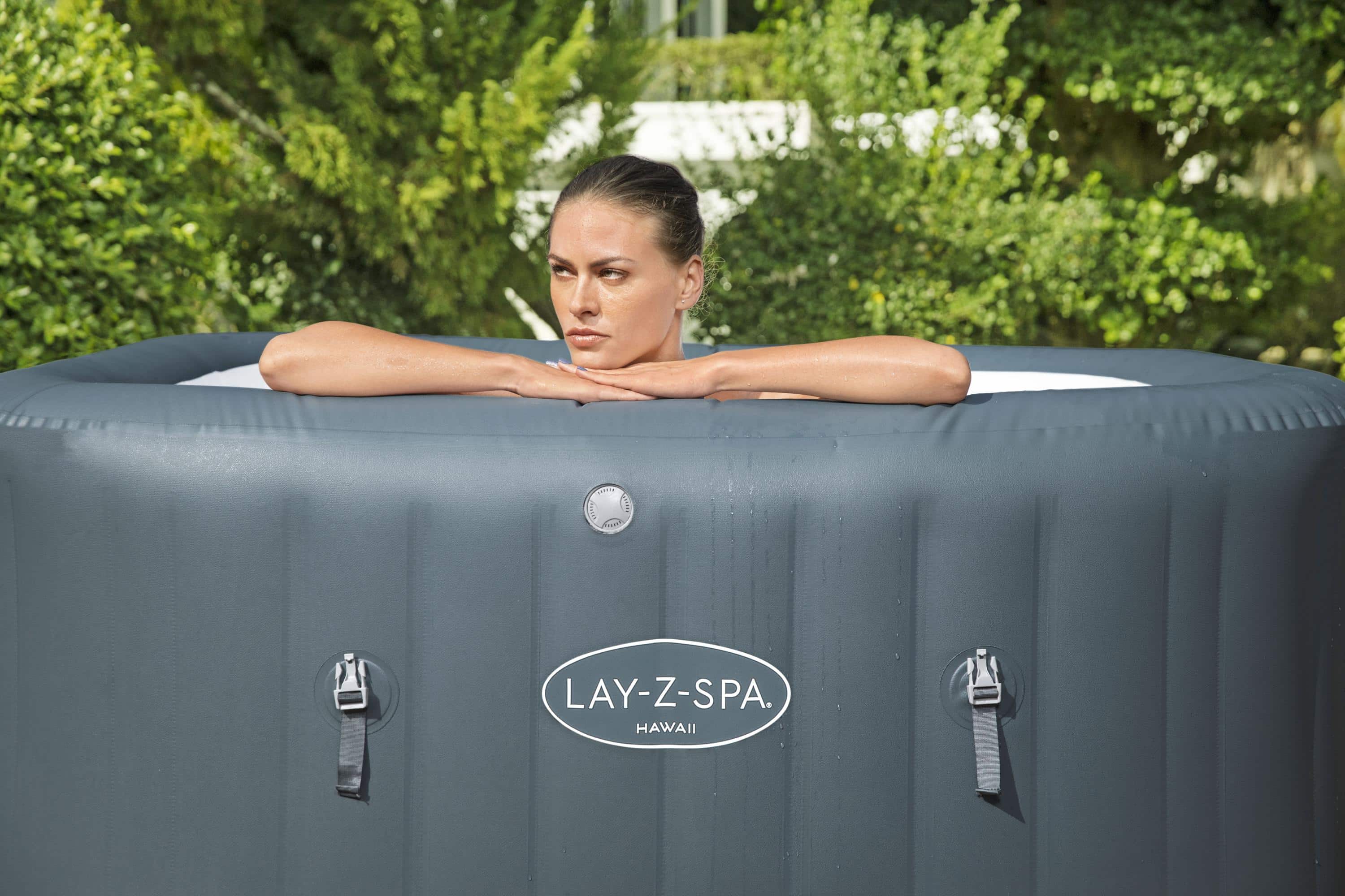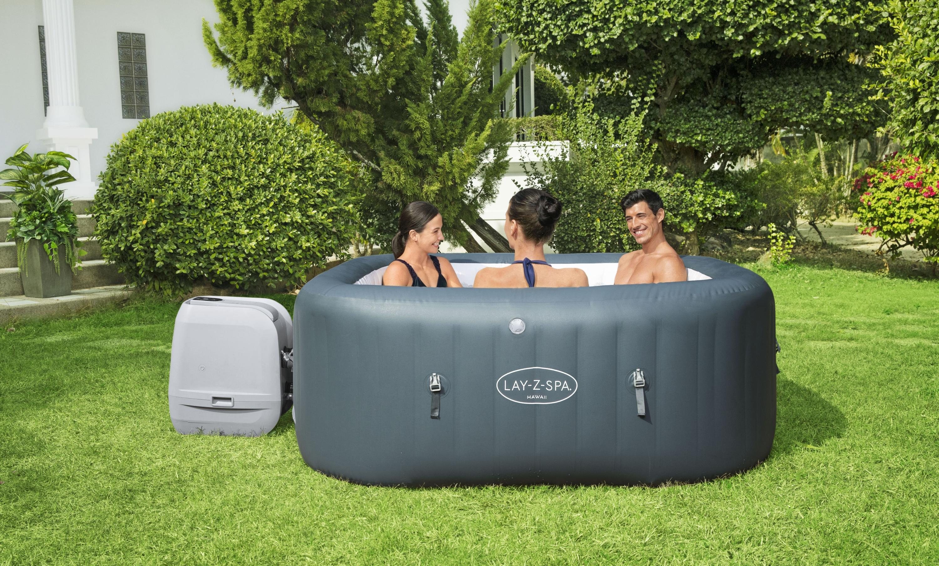Etter bestilling av Lay-Z-Spa Hawaii HydroJet Pro boblebad kan du gjøre deg klar for tidenes overaskelsesglis fra familie og venner. Her skal gode samtaler flyte i takt med de brusende boblene som masserer hele kroppen. En innertier for deg som liker å glede både seg selv og andre!