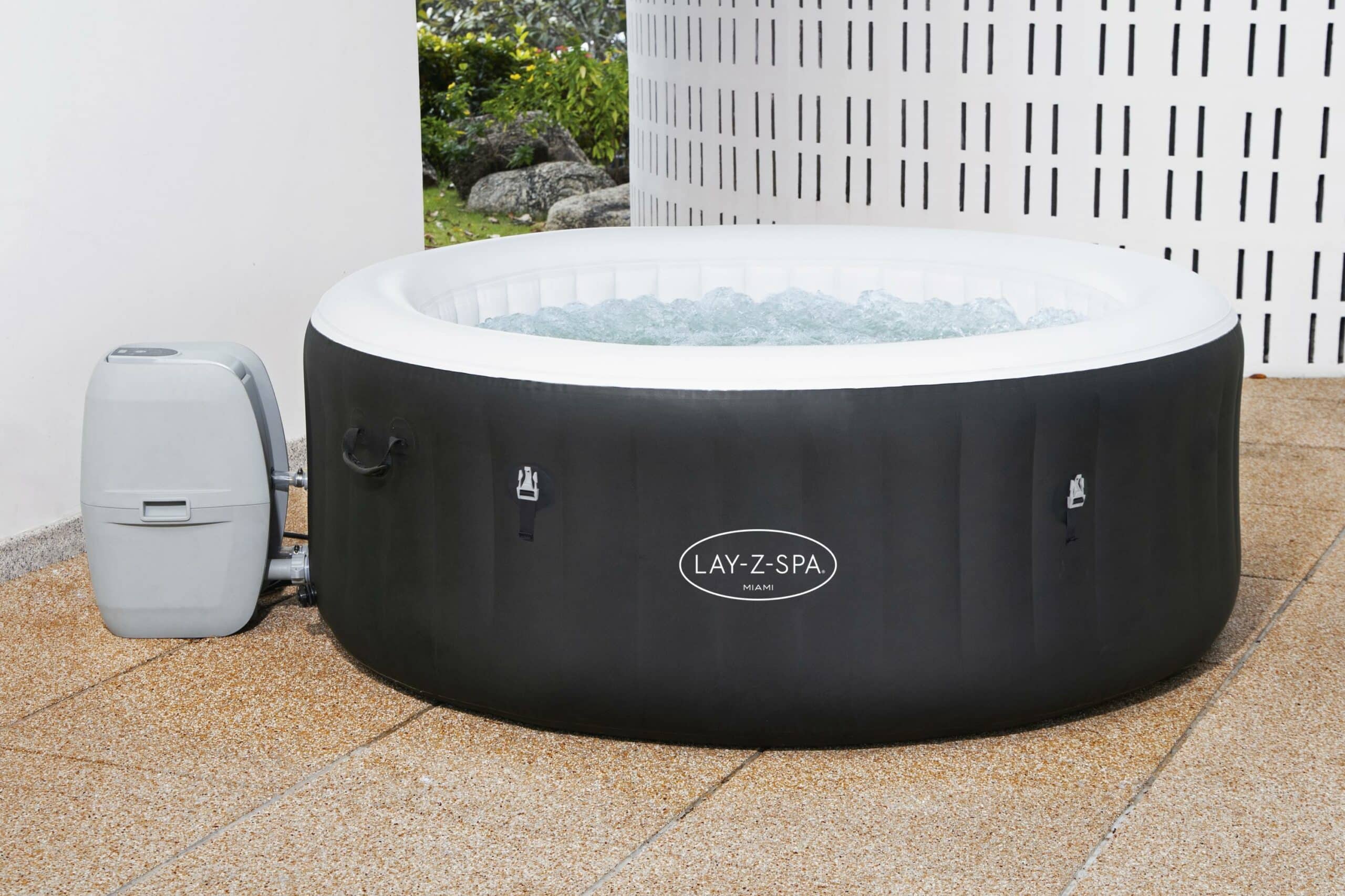 Lay-Z-Spa Miami AirJet™, med sitt moderne svart-hvite design, er det perfekte stedet å revitalisere kroppen og sinnet.