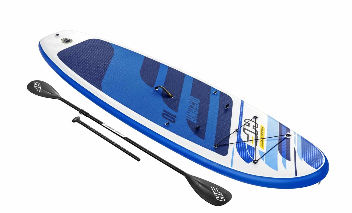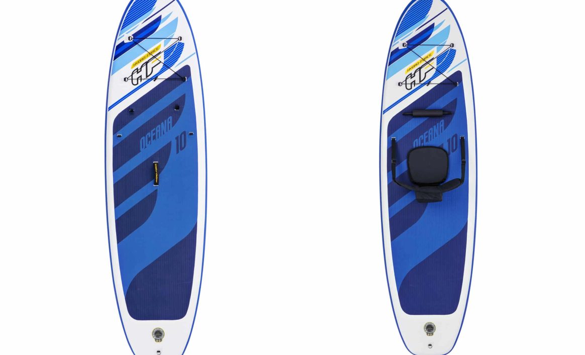 Hydro-Force Oceana er et oppblåsbar SUP-brett med unike funksjoner! Brettet er retningsstabilt, lett å padle og manøvrere. Oceana Paddle Board har en bæreevne på hele 120 kg og lengde på 3,05 meter. “Drop-Stitch” materialet har samme styrke som en brett laget av hardplast.